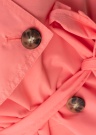 Priekšpusē aizdare ar pogām, komfortu piešķir kabatas, kas izvietotas sānos, bet piedurkņu gali – brīvi krītoši. Viduklī ir sasienama josta. Foto: augums 168 cm valkā S izmēru.