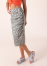 Viegli un gaisīgi Vero Moda zīmola svārki Olga ir sievišķīgi un vasarīgi. Svārkiem, kuru garums pārsniedz ceļgalu, ir taisns piegriezums, aizmugures daļa ir elastīga, bet kreisajā pusē ir dekoratīvs drapējums. Kreisajā pusē ir arī dziļš šķēlums. Modeles augums 178 cm, valkā S izmēru. Kopējais garums šim izmēram ir 72 cm.