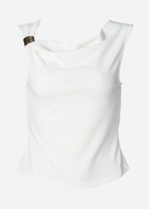 Vero Moda sieviešu tops ir vienkrāsains un mūsdienīgs apģērbs, kas vienmēr ir stilīgs un aktuāls. Tas ir viegls un elastīgs, nodrošinot valkātājai komfortu un pārliecību ikdienā. Dekoratīvais elements uz pleciem piešķir topam īpašu šarmu un izsmalcinātību.