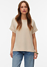 Vero Moda sieviešu T krekls “Hali” ar apaļu kakla izgriezumu un viegli izteiktu dekoltē ir patīkams ikdienas sabiedrotais. Audums ir maigs un nedaudz elastīgs, tāpēc to ir patīkami valkāt gan atpūtā, gan ikdienas gaitās. Sānos iestrādātie šķēlumi piešķir brīvāku siluetu un ļauj vieglāk kustēties, vienlaikus ienesot mūsdienīgu noskaņu.