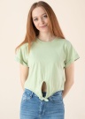 Jauneklīgs Vero Moda t-krekls ir populāra un jauneklīga. Vienkāršs un ar īsāku piegriezumu t-krekls ir ar patīkamu pieskārienu un ar apaļu kakla izgriezumu. Valkāšanas komfortu nodrošina materiāla elastīgums , kā arī malas apakšā ir sasiešanas lentes. Saskaņo ar dažādiem apģērbiem un radi jaunus stilus! Foto: augums 174 cm valkā S izmēru.