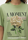Vero Moda sieviešu T-krekls Urena ir lieliska izvēle ikdienas valkāšanai. Tas ir veidots ar apaļu kakla izgriezumu un taisnu piegriezumu, kas piešķir klasisku un daudzpusīgu izskatu. Krekls ir izgatavots no bieza auduma un priekšpusē rotāts ar interesantu apdruku, kas piešķir tam unikālu raksturu.