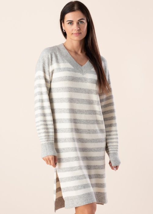 Jauka Vero Moda kleita der dažāda rakstura dienām. Jauka un ar V-veida kakla izgriezumu kleita ir adīta un mīksta. Piedurkņu galos ir valnīši un šķēlumi malas apakšā padara izteiksmīgāku. Preces burvīgā vienkāršība iekaro sirdis! Foto: augums 176 cm valkā S izmēru.