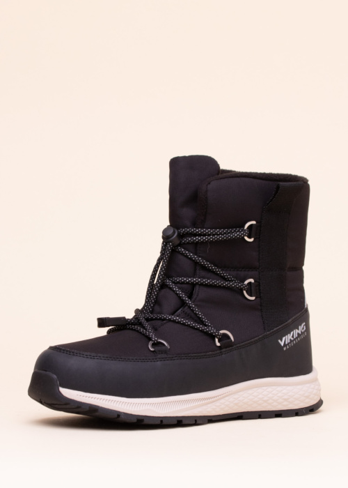 Viking meiteņu ziemas zābaki Equip Warm ir lieliska izvēle aktīvām ikdienas gaitām, nodrošinot komfortu un siltumu pat aukstākajās dienās. Šie zābaki ir viegli un sportiski, padarot tos piemērotus gan pastaigām, gan rotaļām ārā. Draudzīgais dizains nodrošina patīkamu valkāšanu visas dienas garumā. Zābaki ir izgatavoti no materiāla, kas atgrūž ūdeni, pasargājot kājas no mitruma un saglabājot tās sausas. Sānos ir elegants Viking logotips, kas piešķir zābakiem modernu izskatu. Papēdī ir iestrādāts atstarotājs, kas palielina drošību tumšajā laikā. Priekšpusē ir sasienama josta, kas ļauj pielāgot zābaku piegulšanu un nodrošina papildu stabilitāti.