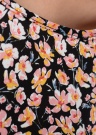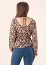 Uzkrītošā un skaistā Only blūze ar dziļu kakla izgriezumu ir ideāli piemērota gan konservatīvākiem pasākumiem, gan ikdienas valkāšanai. Pavasarīgs raksts piešķir blūzei dzirksti un pauž sievišķību. Piedurkņu galos ir elastīga josla, kas veido skaistu krokojumu. Elastīgā jostasvieta izceļ valkātājas vidukli un dziļajam izgriezumam aizmugurē ir sasienam bante. Blūzes gaisīgums un vieglums ļauj to valkāt ari vasarā. Modeles augums 178 cm un valkā S izmēru.