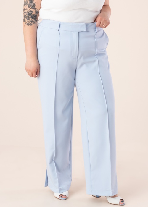 Lietišķas Vila Evoked bikses der valkāšanai gan ikdienā, gan formālākos pasākumos. Sievišķīgas un ar paaugstinātu jostasvietu bikses ir elastīgas un ar taisnām starām. Vidukļa daļa aizdarāma ar pogu, āķi un rāvējslēdzēju , kā arī sānos ir atvērtas kabatas. Šķēlumi bikšu galos padara izteiksmīgāku un komfortu piešķir gumija aizmugurē. Foto: augums 167 cm valkā 46 izmēru.