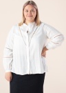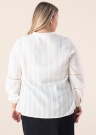 Jauka Vila Evoked blūze der valkāšanai ikdienā. Sievišķīga un ar apaļu kakla izgriezumu blūze ir plāna un ar garām piedurknēm. Priekšpusē ir pogu aizdare , akcentu piešķir mežģīne un piedurkņu galos ir pogas. Foto: augums 167 cm valkā 46 izmēru.