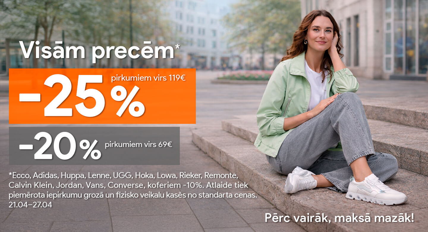 Pērc vairāk, maksā mazāk! Šodien VISĀM PRECĒM -20% pirkumiem no €99, -15% pirkumiem no €69!