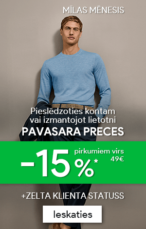 Pērc vairāk, maksā mazāk! Šodien VISĀM PRECĒM -20% pirkumiem no €99, -15% pirkumiem no €69!