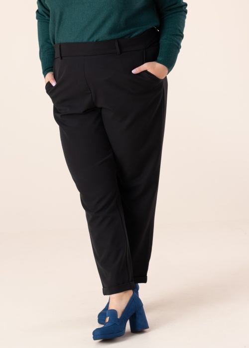 Stilīgas Wasabiconcept bikses der valkāšanai gan ikdienā, gan formālākos pasākumos. Ērtas bikses ir ar elastīgu jostasvietu un ar šauriem staru galiem. Sānos ir atvērtas kabatas un aizmugurē kabatu imitācija. Saskaņo ar dažādiem apģērbiem un radi jaunus stilus! Foto: augums 167 cm valkā 46-48 izmēru.