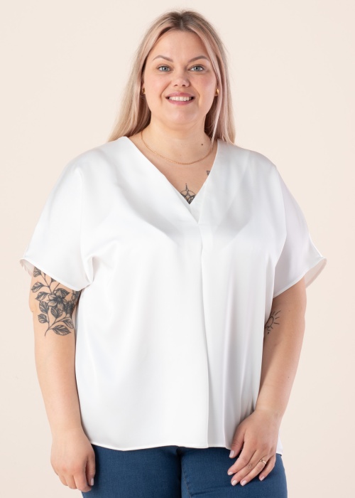 Jauka Wasabiconcept blūze rada svaigu un gaumīgu kopskatu. Sievišķīga ar V-veida kakla izgriezumu blūze ir ar taisnu siluetu zīdaina un plīvojoša , kā arī akcentu piešķir dizaina šuve uz apkakles. Stilīgā klasika vienmēr modē. Foto: augums 167 cm valkā 46-48 izmēru.
