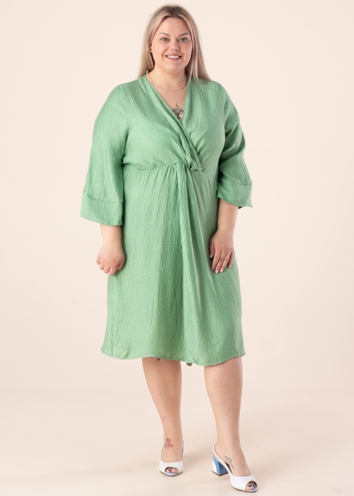 Stilīga Wasabiconcept kleita der dažāda rakstura dienām. Jauka ar pārlikumu kleita ir ar trīs ceturtdaļu piedurknēm viegla un laba krituma. LENZING ™ ECOVERO ™ šķiedra, kas iegūta no sertificētiem atjaunojamiem koksnes avotiem, izmantojot videi draudzīgu ražošanas procesu un ievērojot augstus vides standartus. Foto: augums 167 cm valkā 46-48 izmēru.