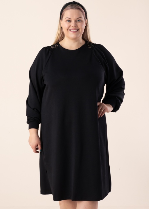 Burvīga Wasabiconcept kleita ir laba izvēle valkātājai, kura novērtē klasiku. Vienkārša un ar reglāna piedurknēm kleita ir mīksta un ar brīvāka piegriezuma. Uzmanību piesaistošas mežģīne uz pleciem , piedurkņu galos ir valnīši un sānos ir šķēlumi. Audums ar patīkamu pieskārienu ļauj izbaudīt valkāšanu. Foto: augums 167 cm valkā 46-48 izmēru.