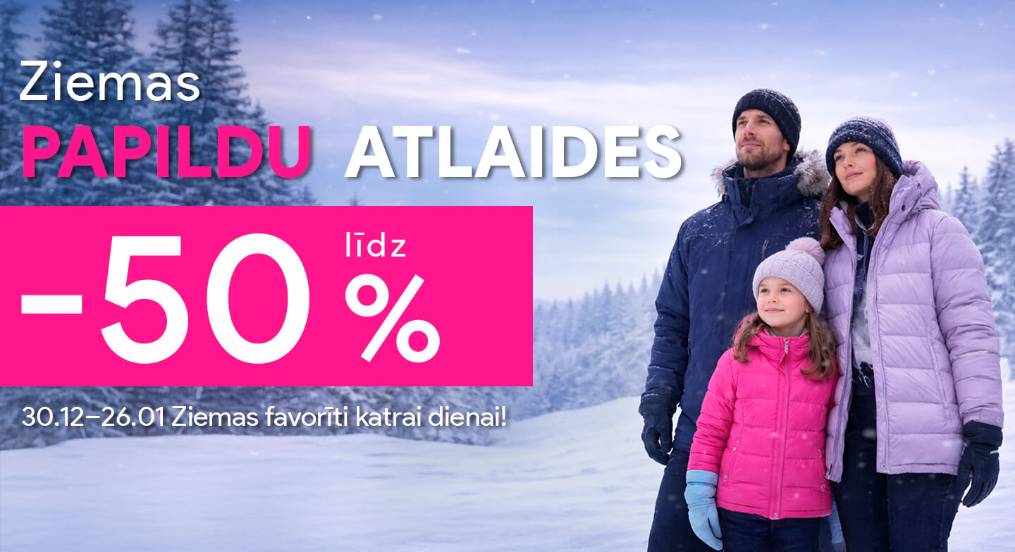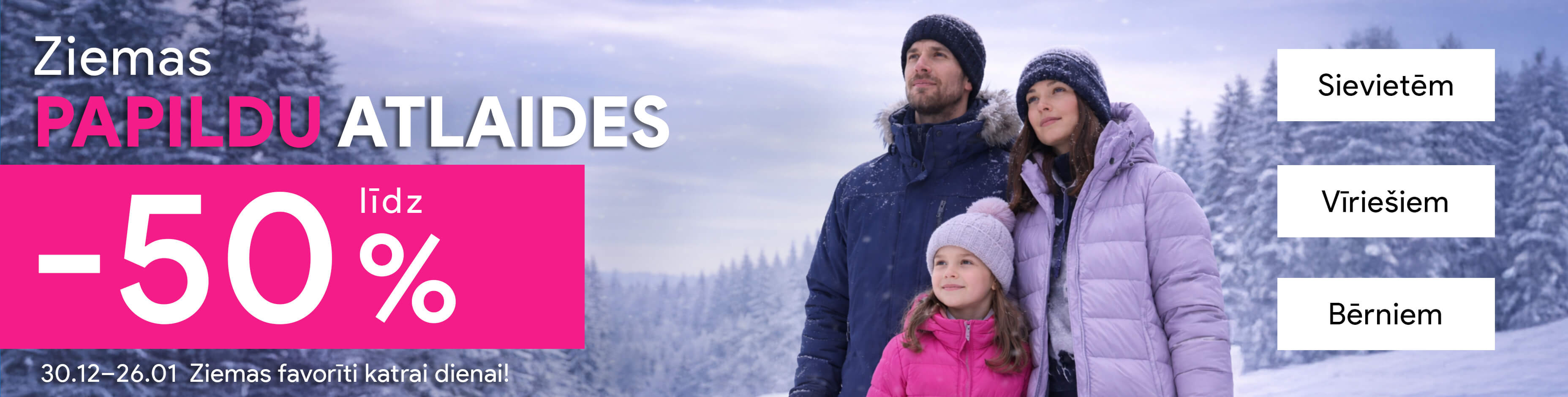 IZPĀRDOŠANA! Rudens virsjakas, džinsa bikses, kurpes, brīvā laika un sporta apavi, puloveri, džemperi u.c. līdz pat -70%! Skatīt sievietēm | vīriešiem | bērniem.