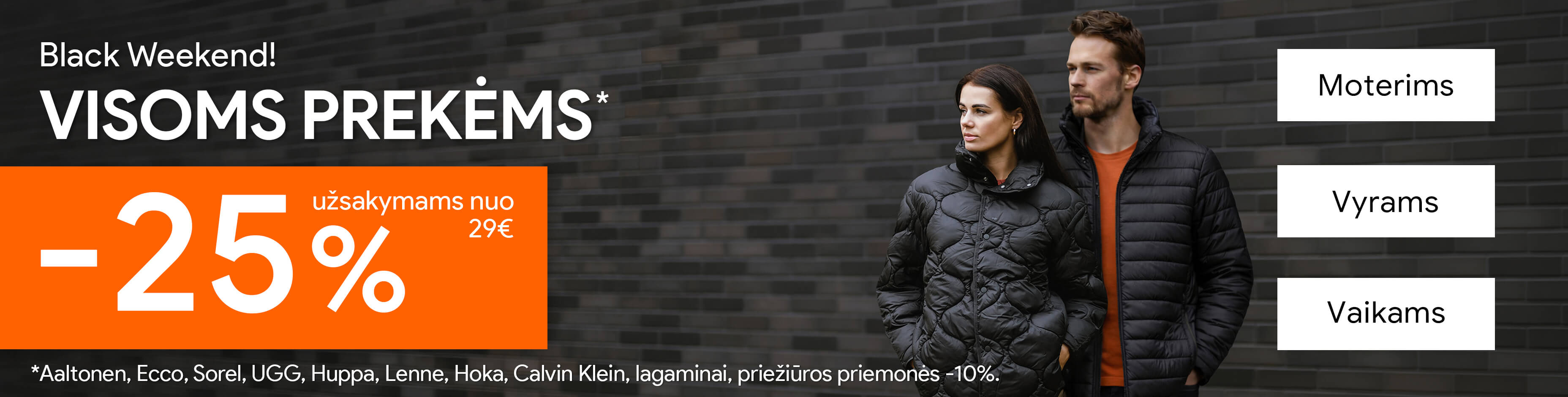 Pirk daugiau, mokėk mažiau! Šiandien VISOMS PREKĖMS -25% perkant nuo 99€ ir -20% nuo 69€!