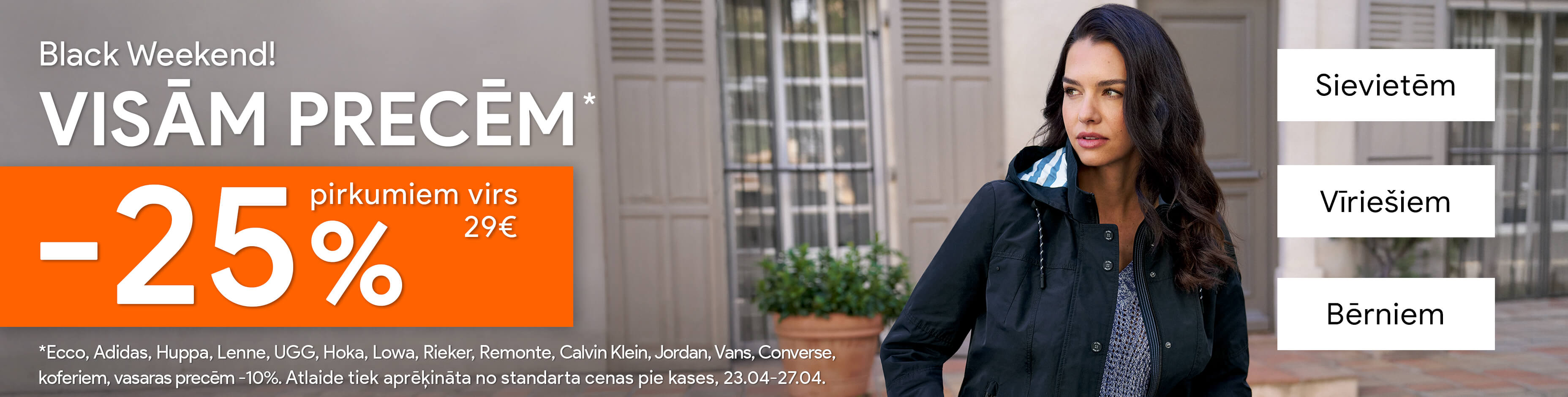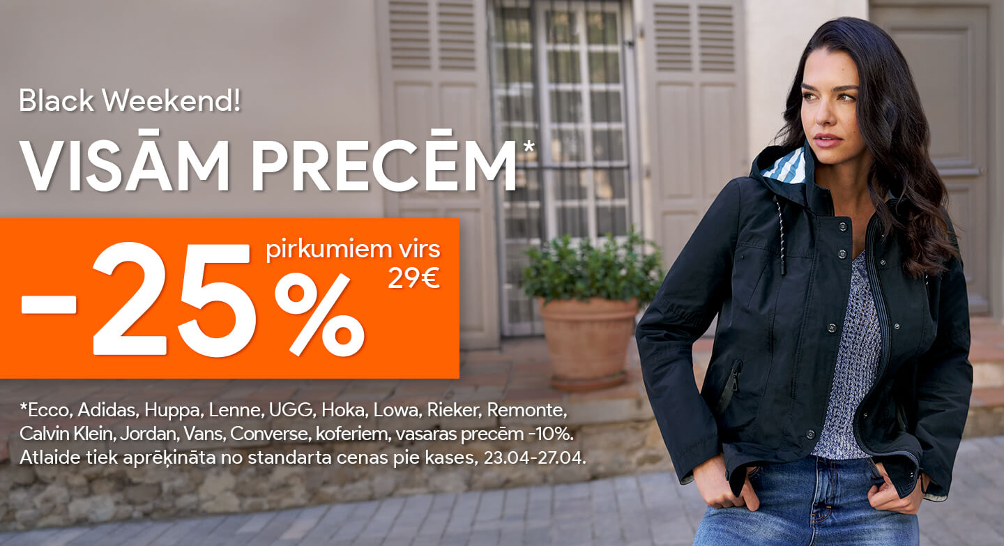 IZPĀRDOŠANA! Rudens virsjakas, džinsa bikses, kurpes, brīvā laika un sporta apavi, puloveri, džemperi u.c. līdz pat -70%! Skatīt sievietēm | vīriešiem | bērniem.